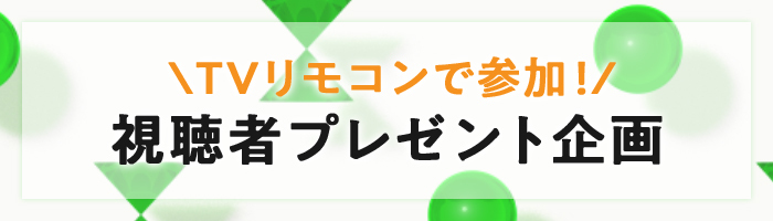 - 本プレゼント企画は(株)TVerが提供するTVer Media Platform及びTVer IDを利用しています。ご応募にはTVer Media Platformへのアカウント登録(会員登録・無料)が必要です。(株)TVerへのアカウント登録は、お客様の意思に基づいて行ってください。