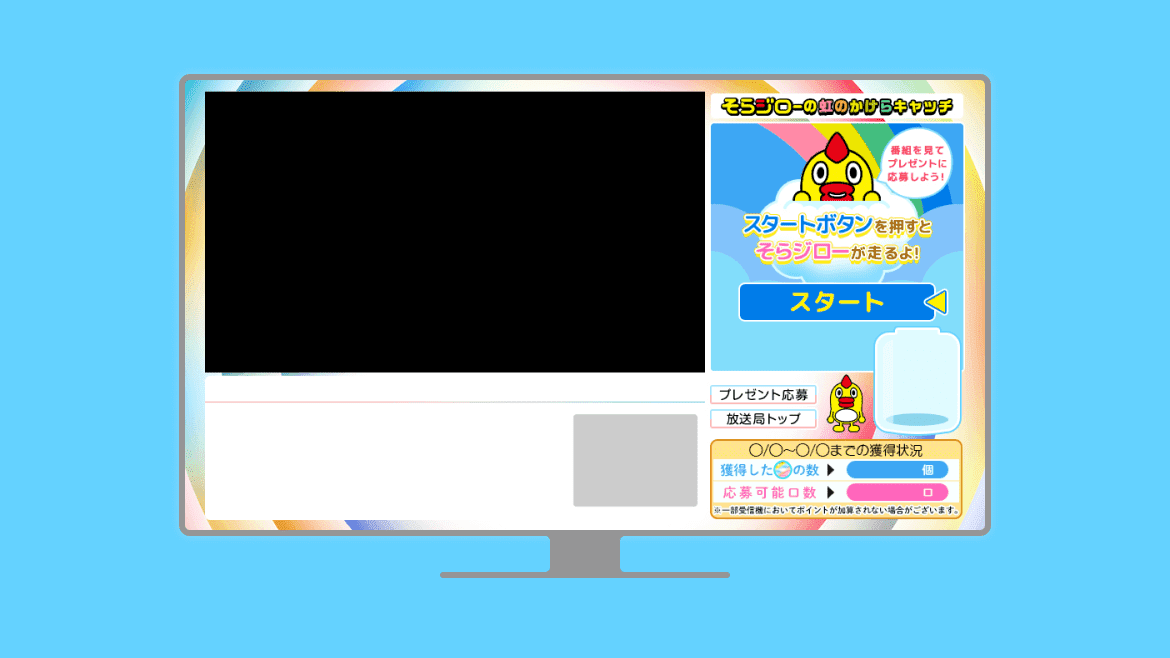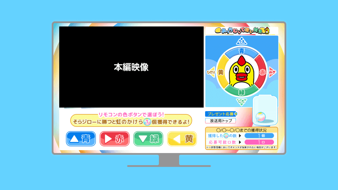 チャンネルを変える場合は、一度データ放送を表示して、そらジローの位置を確認してください。